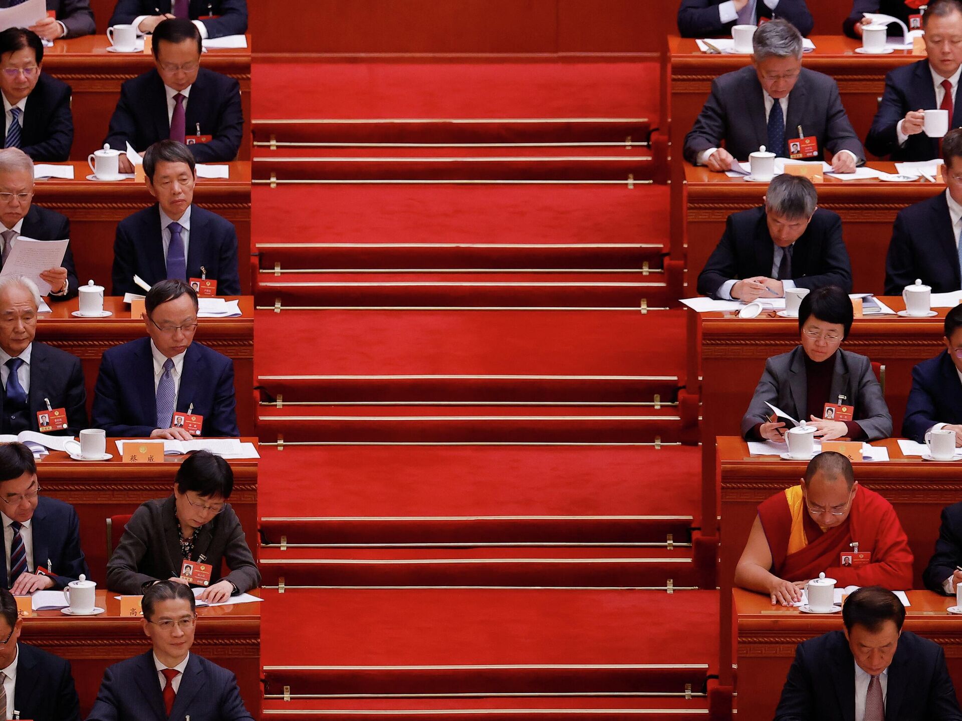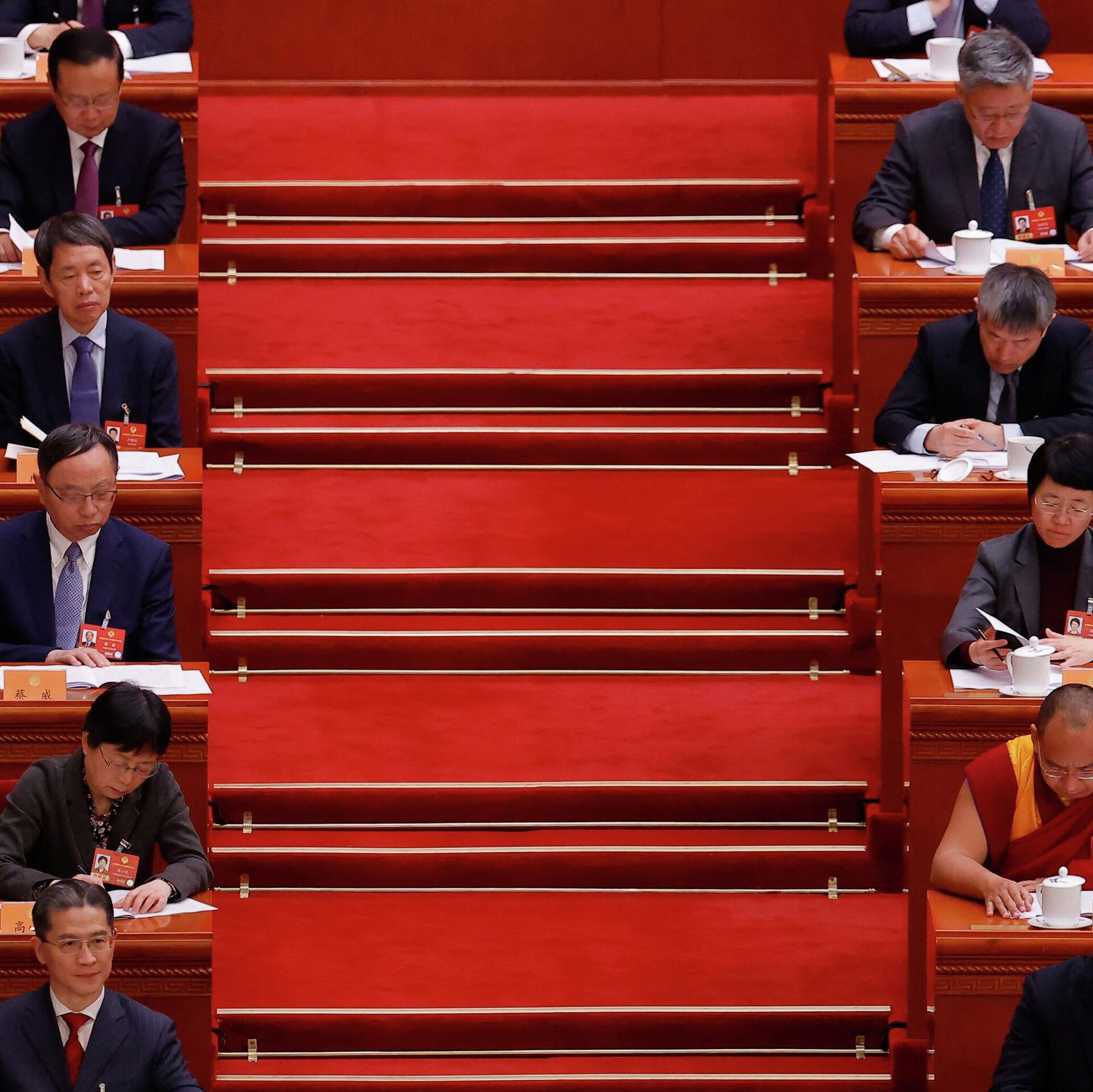 中国十四届全国人大四次会议5日上午在人民大会堂开幕,习近平等党和国家领导人出席开幕会,国务院总理李强向大会作政府工作报告。 2026年3月5日, 俄罗斯卫星通讯社
