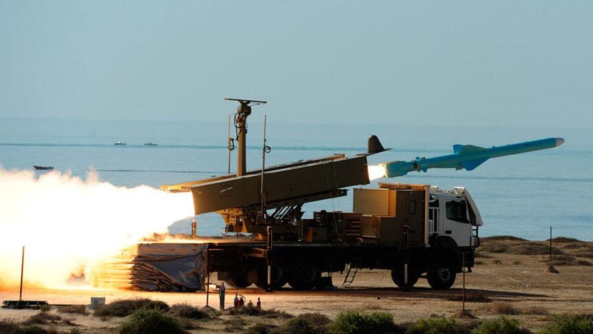 CC BY 4.0 / Mohammad Sadegh Heydari / Firing Qadr Missile from a truck launcher in Velayat-90 Naval Exercise (cropped photo)