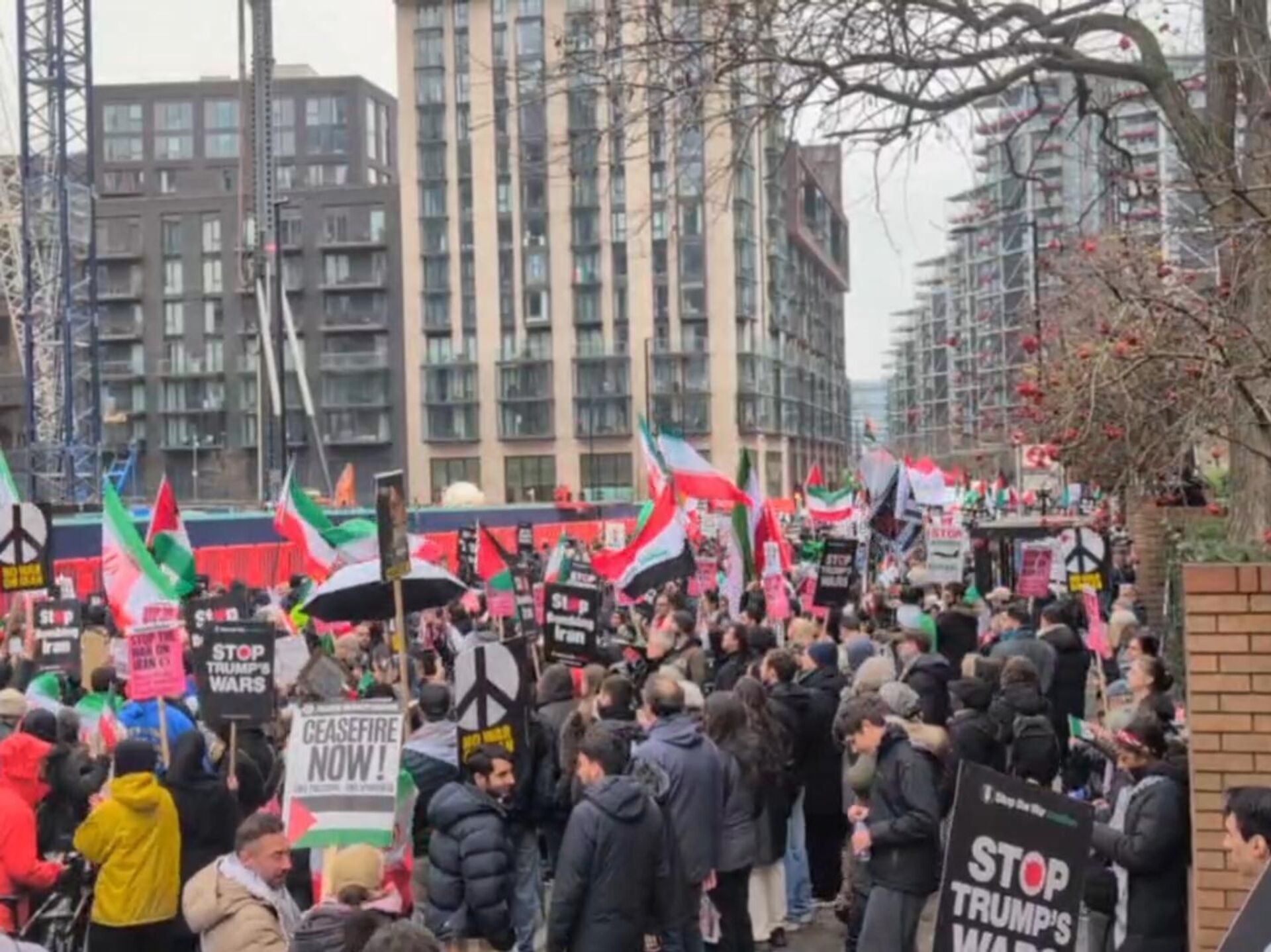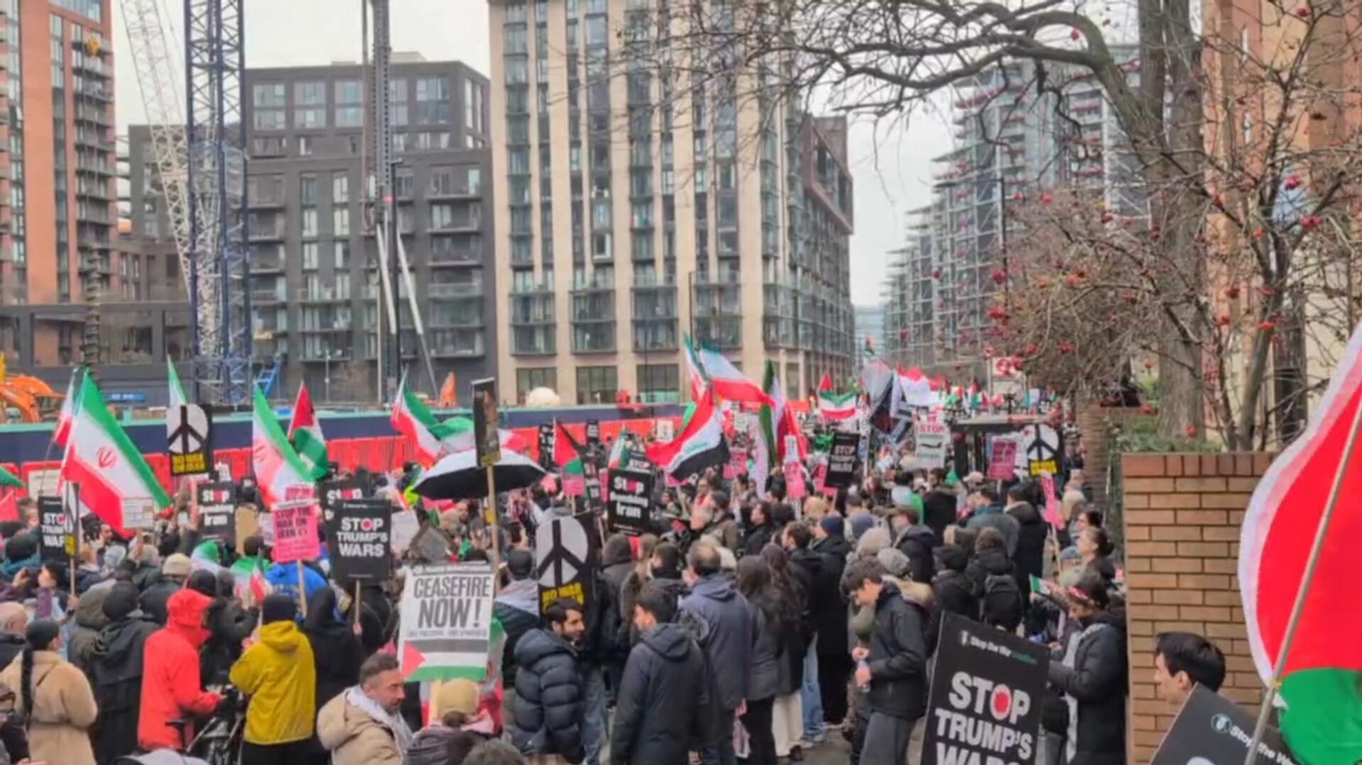 2026年3月7日, 23:53 (更新: 2026年3月8日, 05:12) 俄罗斯卫星通讯社记者报道,数千人正在伦敦美国驻英国大使馆前举行抗议活动,反对美国和以色列对伊朗的打击。
