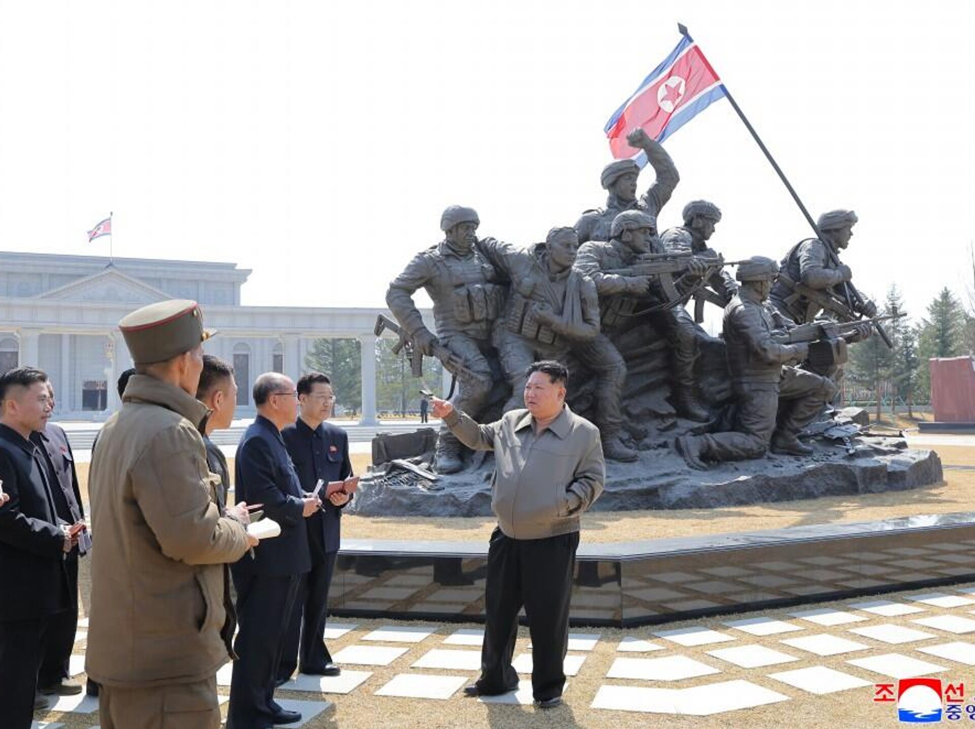 朝鲜劳动党总书记、国务委员会委员长金正恩亲临海外军事作战功勋纪念馆建设现场进行指导。朝鲜劳动党中央委员会领导干部及项目设计、创作单位的负责干部陪同视察。目前,海外作战战功纪念馆的整体工程进度已接近97%。金正恩同志指出,海外军事作战功勋纪念馆将是颂扬朝鲜民主主义人民共和国英雄儿女伟大革命精神的时代丰碑,是进行爱国主义教育的圣殿。他表示,将于四月中旬在此隆重举行阵亡将士遗骸安葬仪式,并将纪念馆竣工仪式与库尔斯克州解放战役胜利纪念活动相结合。